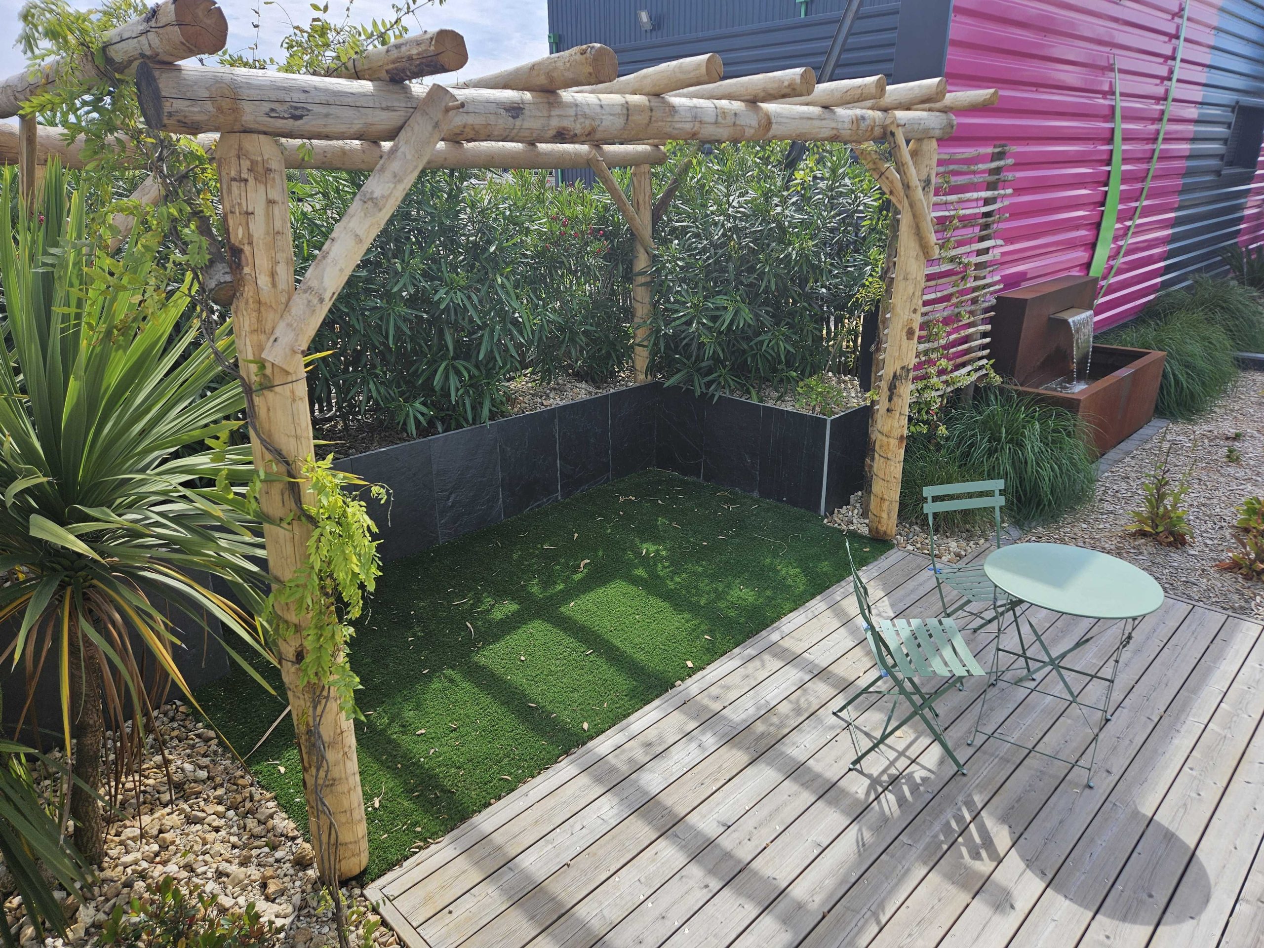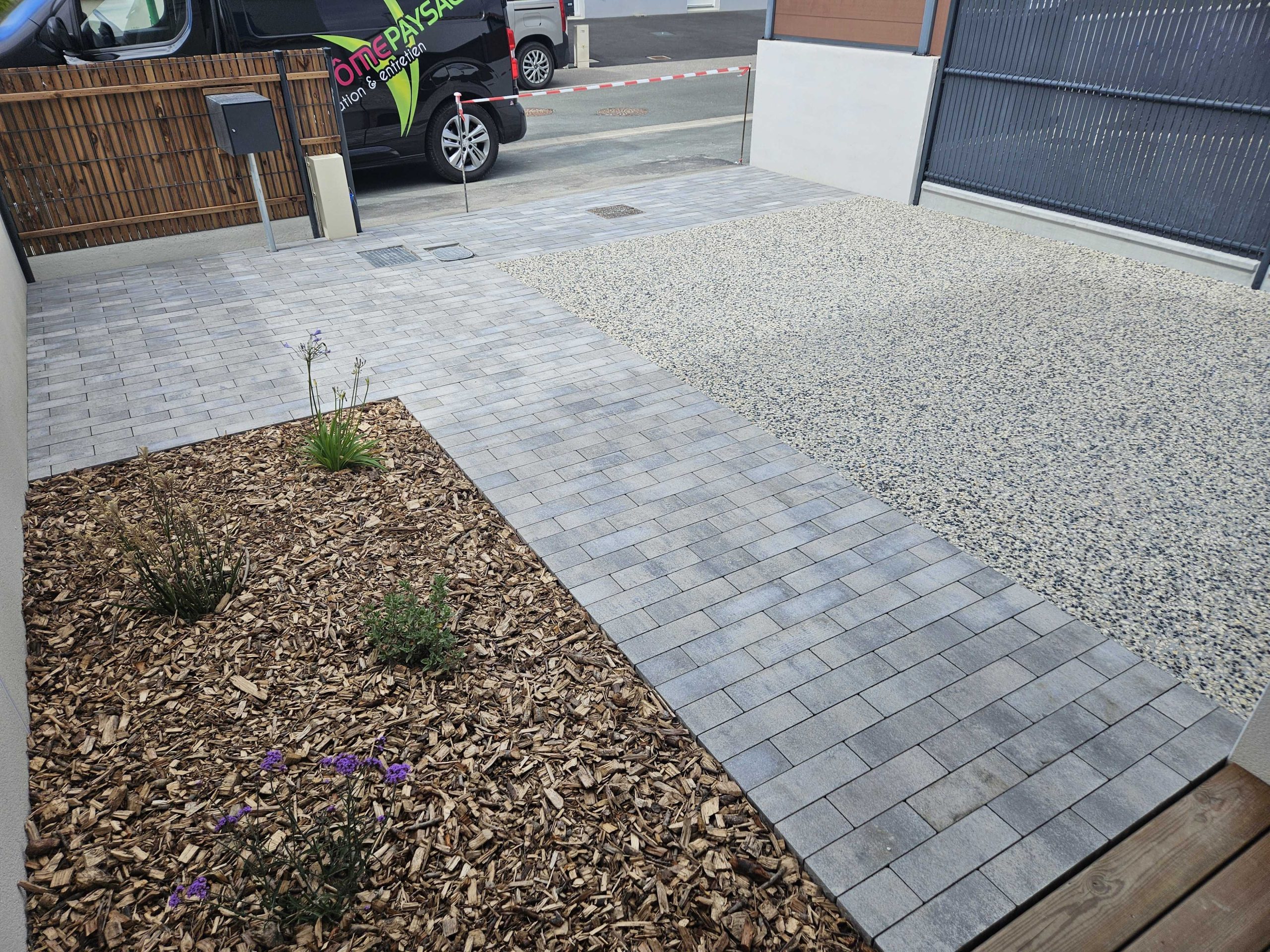 Arôme Paysage, à côté de la Roche-sur-Yon, c’est aussi la réalisation de vos terrasses : en bois, béton décoratif, dalles et pavages. Vos cours et vos allées : béton décoratif, gravillonnage et alvéole.